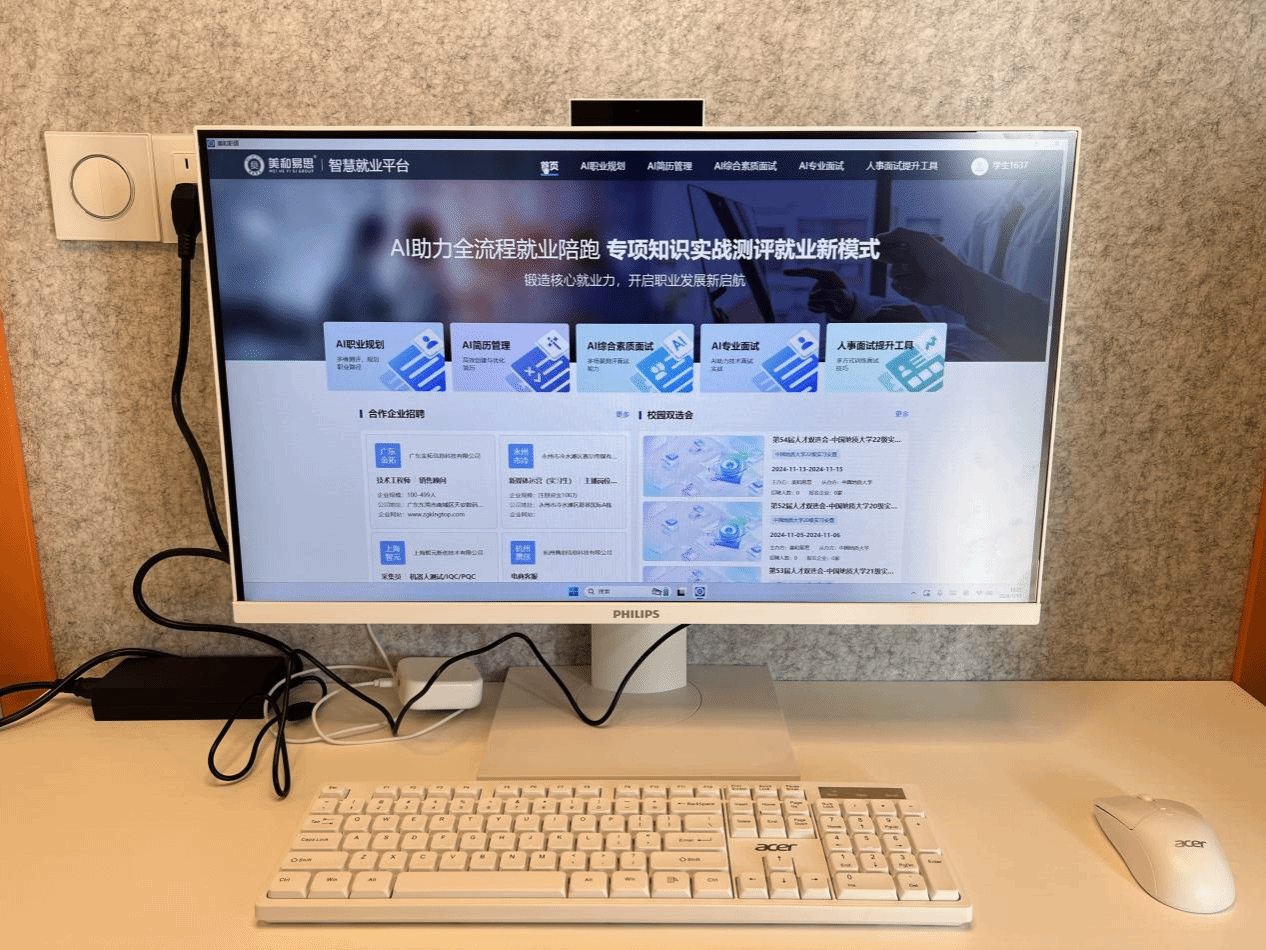 该平台构建了全链条就业服务体系,整合校内外招聘信息、双选会动态及职业发展课程,打造一站式资讯门户。依托智能分析技术,平台提供个性化精准服务:助力职业探索规划、优化简历岗位匹配度、开展多轮次仿真模拟面试并提供表达逻辑、专业知识运用等深度反馈。线下配套的智能面试舱,更营造沉浸式演练环境,有效提升员工临场适应能力,实现前沿技术向育人服务工具的转化。