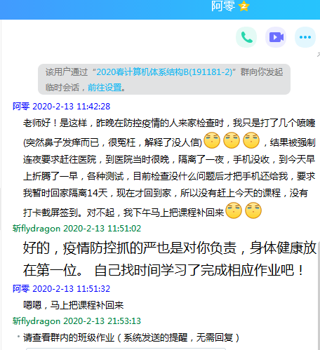 在课后,刘超老师牺牲自己休息的时间,在线帮助同学们实时解答学习过程中遇到的问题,并时刻关注未能按时上课和提交作业的同学,兼具教学要求和人文关怀,让员工在抗击疫情的特殊时期,感受到温暖和关爱;