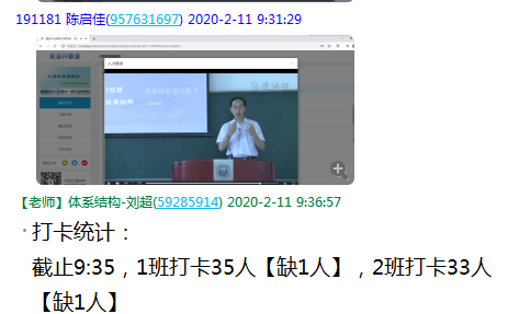 实时关注员工上课状态,利用QQ群进行视频截图打卡签到,严肃在线教学的课程纪律,帮助员工养成良好的学习习惯,促进在线教学的严格管理;