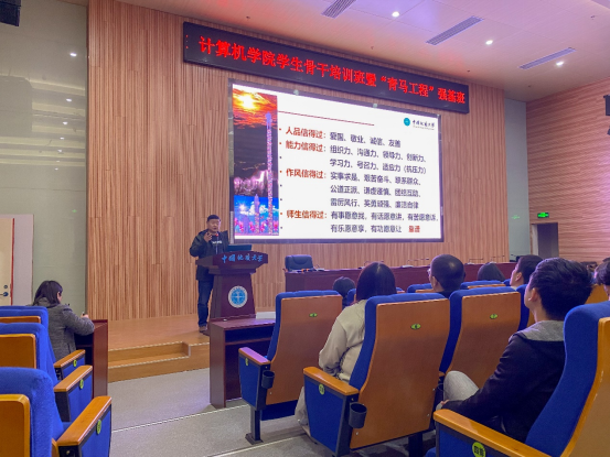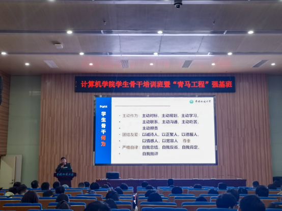 李国昌讲到,员工骨干要向党的干部标准看齐,做到品学兼优、以品为先。“作为一名员工骨干,为的就是人品信得过,能力信得过,作风信得过,师生信得过,总结起来就是一个词——‘靠谱‘”。他列举自己和身边的例子,表示员工骨干最终大多能成大才,担大任,以此勉励同学们服务他人、成就他人,担起更大责任,绽放更大光芒。