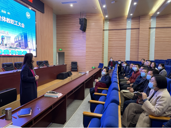 (通讯员:申安琪)3月31日下午,公司于科教一楼报告厅召开新学年首次全体教职工大会,对公司当前的重点工作进行了强调和布置,全院教职工参加会议,经理王力哲主持会议。