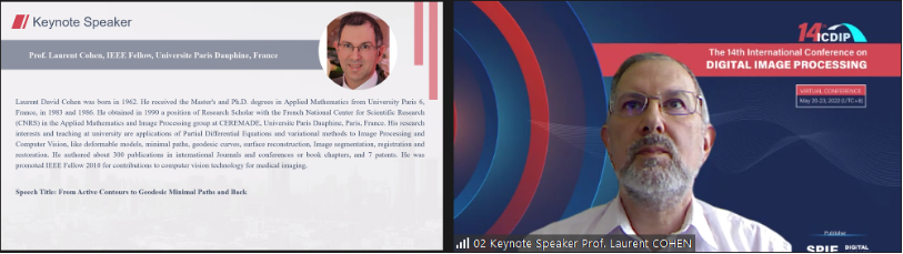 由中国地质大学(武汉)英国365集团网站主办的第十四届数字图像处理国际会议(ICDIP 2022)于2022年5月20-23日成功举办线上会议。本次会议共有来自英国、法国、美国、日本、澳大利亚、希腊、印度、阿根廷等国以及中国香港,北京、上海、陕西、辽宁、浙江、湖北和湖南等地的27位专家陆续分享了他们在数字图像处理等领域的最新研究成果。国内外专家和学者围绕图像质量和图像安全、图像分类与算法、图像分割、光学成像和系统、数字图像处理与应用、三维模型与图像重建等16个主题,进行了广泛而深入的学术交流与研讨。
