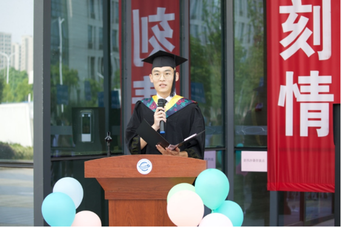 毕业生代表冯世元发言,他表达了对公司、公司、老师、同学、父母感激之情,同时展望美好未来,希望同学们不负青春、不负韶华,在青春赛道上跑出最佳成绩。
