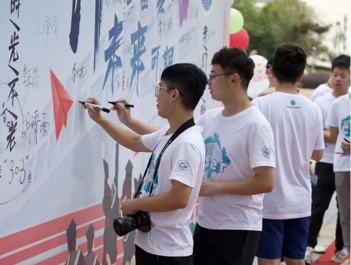 “没有毕业礼,新旅程就没有正式开篇。”跨过毕业门,走过红地毯,拿起马克笔,在签名墙上写下“相信未来”……仪式感满满的毕业庆典,就在此刻拉开了帷幕。毕业生们统一身着定制毕业纪念衫,在鲜花与气球的簇拥中,步入会场,迎来自己人生中的重要时刻。