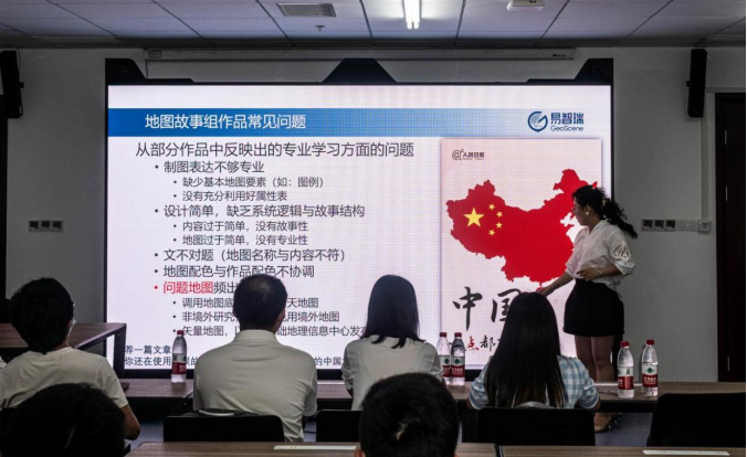 “长夏风清日,檐牙燕雀飞”,6月25日下午一点,应公司陈麒玉教授的邀请,易智瑞信息技术有限公司教育总监张聆女士一行四人来公司访问,在公司235室与空间信息与数字技术专业的本科学子进行了一场别开生面的交流活动。