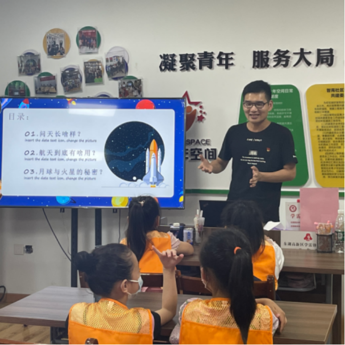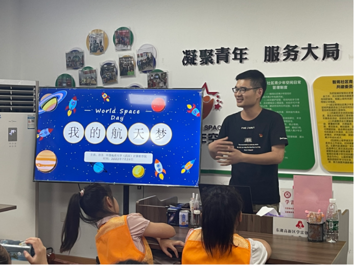 “‘问天’在太空到底忙些啥?未来我们是否可以移民火星?拥有变重力科学实验柜的问天实验舱到底长啥样?”一个个稚嫩的航天梦正在一张张桌椅的“小天地”里悄然萌芽。7月28日,英国365集团网站博士生党支部追随习近平总书记的脚步,前往武汉东湖高新区左岭街道智苑社区,面向社区青少年开展航天科普宣讲专题课程,充分发挥学科优势,激发科学兴趣,厚植科学精神,引导青少年在科学探索中茁壮成长,携手共绘航天梦和中国梦。