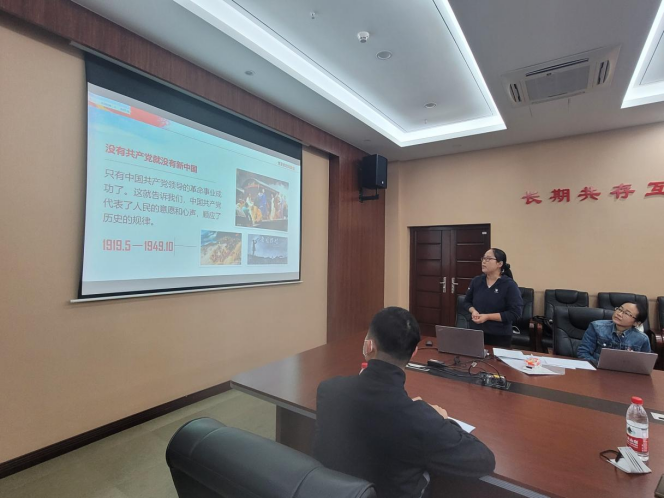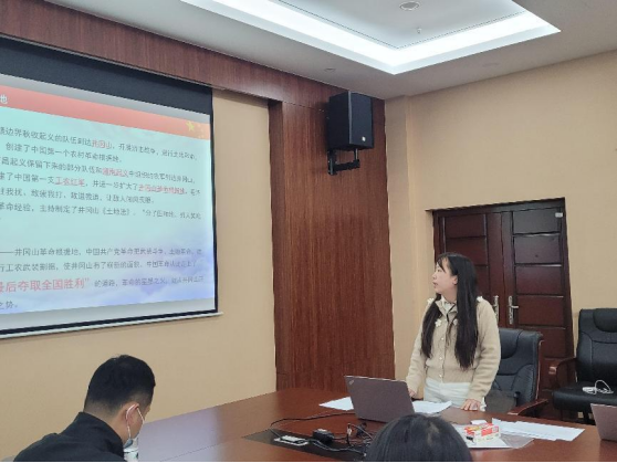 院直党支部书记黄燕霞以“弘扬井冈山精神——坚定理想信念”为题,分享了井冈山革命根据地的建立、科学内涵和现实意义、让井冈山精神放射出新的时代光芒的学习体会。