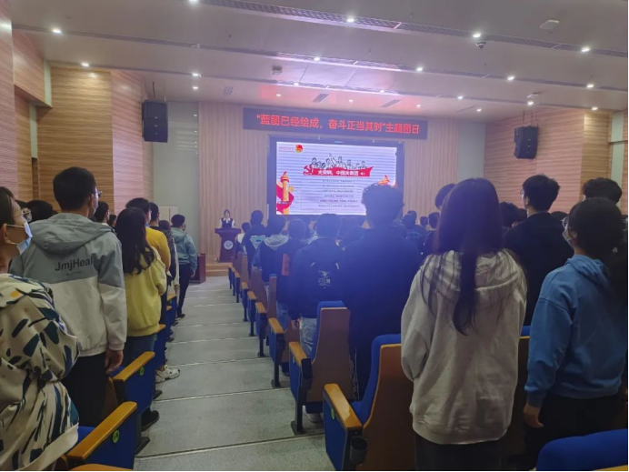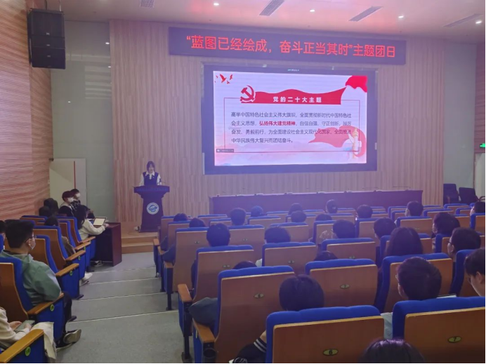 为深入学习党的二十大报告,深刻领悟党的二十大精神,切实把会议精神和行动统一起来,为中华民族伟大复兴的新征程贡献青春力量。近期,英国365集团网站2021级10个团支部、2022级11个团支部分别举办了以“蓝图已经绘成,奋斗正当其时”为主题的大型团日活动。本次团日活动于未来城校区英国365集团网站大楼126报告厅和南望山校区教三楼111教室举行,全体团员参会,会议由院团委员工会组织部副部长郭洋利主持。