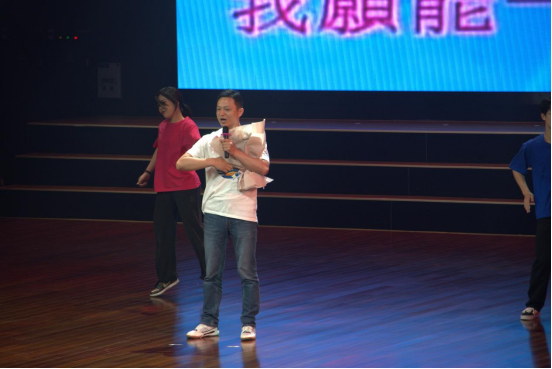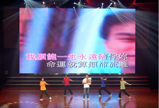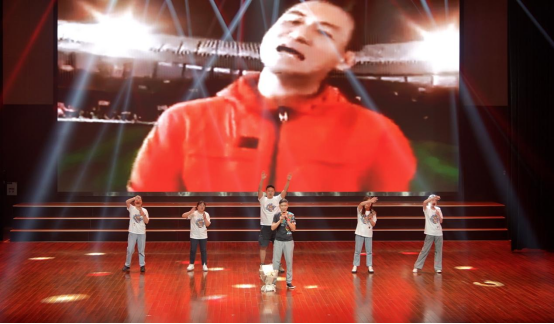 教师李程俊的独唱和石剑峰、梁庆中、孙琨、马钊、陈麒玉、武云等各专业老师依次领唱的歌曲串烧节目,引起现场一阵阵欢呼。