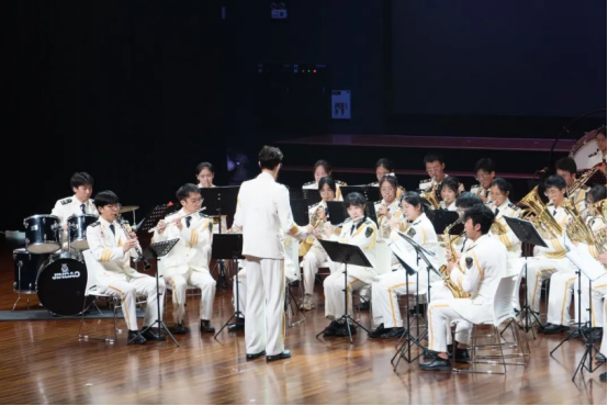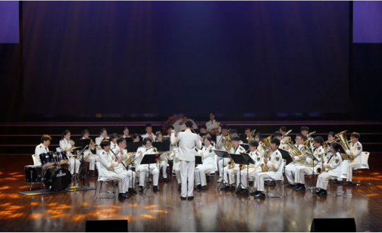 紧接着,由军乐团演奏《钢铁洪流进行曲》,激昂的乐曲展现了学子们的多才多艺。出人意料的《樱桃小丸子》变奏更将全场的气氛推向高潮。