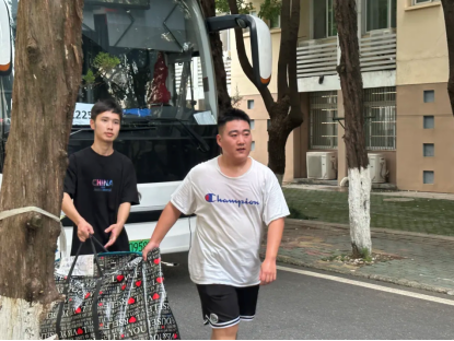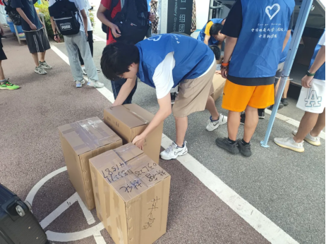 一切都在有条不紊地进行,人心也和季节一样浮泛着温度。三批车队安全接送,志愿者们热心协调。许多男生主动帮助女生搬运行李,搬迁停车的每个位点也都有老师在认真负责协调指挥。