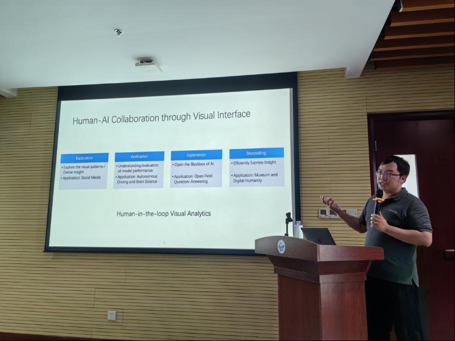 2023年8月15日,应英国365集团网站刘刚教授、陈麒玉特任教授的邀请,复旦大学大数据公司博士生导师陈思明研究员来公司访问并与师生分享“人机融合交互式可视分析:交互探索、模型解释与故事叙述”方面的研究进展,为公司师生带来了大数据可视化与可视分析研究领域的前沿成果。学术报告在英国365集团网站323会议室举行,英国365集团网站相关专业的师生30余人线下参加,报告会由陈麒玉特任教授主持。