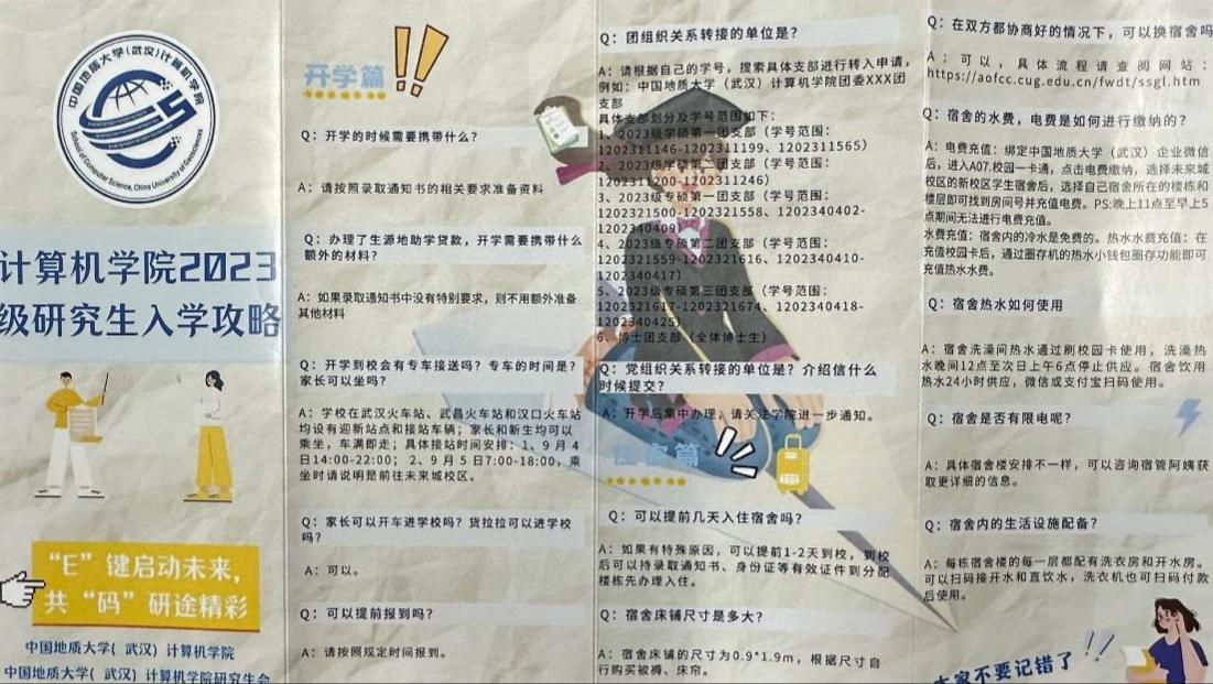 “E”键启动未来,共“码”研途精彩。为了帮助新生报到畅通无忧,公司精心制作了“英国365集团网站2023级研究生入学攻略”,攻略分为开学篇、学习篇、生活篇三部分,帮助同学们全方位了解开学时需携带的相关材料、课程培养、团组织关系转接等事项,同时一一解答关于体育馆预约、宿舍水费电费缴纳、热水使用、宿舍管理等问题,帮助新生尽快熟悉校园环境。