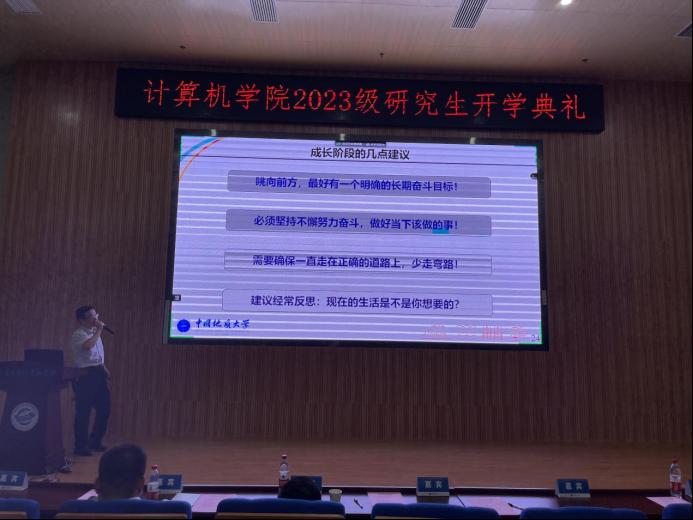 张经理首先肯定了同学们为考研付出的努力,对2023级研究生的到来表示热烈的欢迎。他以公司发展历史与人才培养成绩为切入点,向同学们展示了公司丰厚的底蕴,并从专业设置、团队队伍、科研平台与科研项目等方面介绍了公司近年来发展的概况。他谈到,国家在高新领域的巨大投入以及良好的政策指引,公司深厚的学术科研底蕴和一代代地大人的砥砺奋斗,为今天的在座的同学们奠定了良好的成长环境和优渥的发展平台,希望同学们秉承“艰苦朴素,求真务实”的校训精神,在地大英国365集团网站刻苦钻研,实现出属于自己的新突破,为国家前沿科技发展贡献自己的力量!