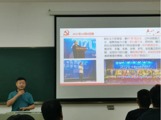 李书记分享了近几年空间信息与数字技术专业毕业生去向的翔实数据,并以“奋斗是青春最靓丽的底色,行动是青年最有效的磨砺”为指引,将保研、考研、就业的优秀员工和落后员工进行对比,剖析造成差距的原因,并播放毕业学长代表录制的视频,有本科毕业在华为工作的高一鸣以及在公司完成本硕博学习毕业后在中国矿业大学任教的左明成。学长们现身说法,勉励同学们志存高远,脚踏实地,坚定前进信心,不断提升自己,为青春绽放绚丽之花朵,为民族堪当复兴之重任。李国昌对同学们提出三点希望:一是赛程过半,认真思考,立真目标;二是撸起袖子,争分夺秒,下真功夫;三是无论西东,爱岗敬业,写真论文。