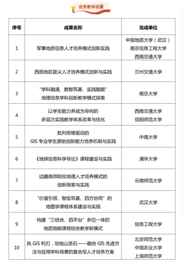 该论坛以“数智与提质”为主题,知名院士、专家学者、行业组织、企业以及来自全国各地高校的师生代表围绕理论创新与前沿探索、团队建设与人才培养等议题进行沟通交流,共享最新成果和经验。经高校GIS论坛学术委员会资格审查、评审专家组讨论、打分、投票,《军事地质信息人才培养模式创新实践》成果获得优秀教学成果奖(位列第一名)。