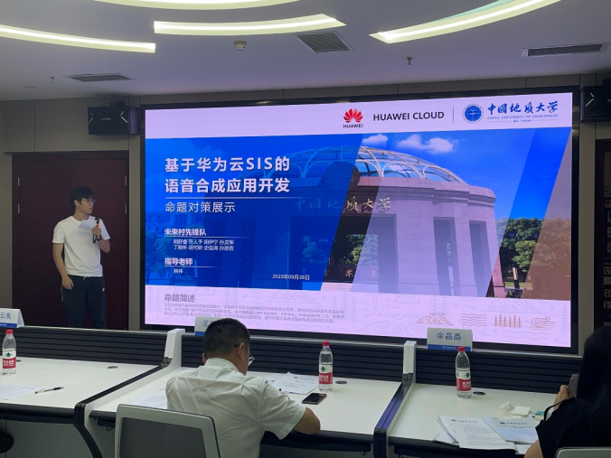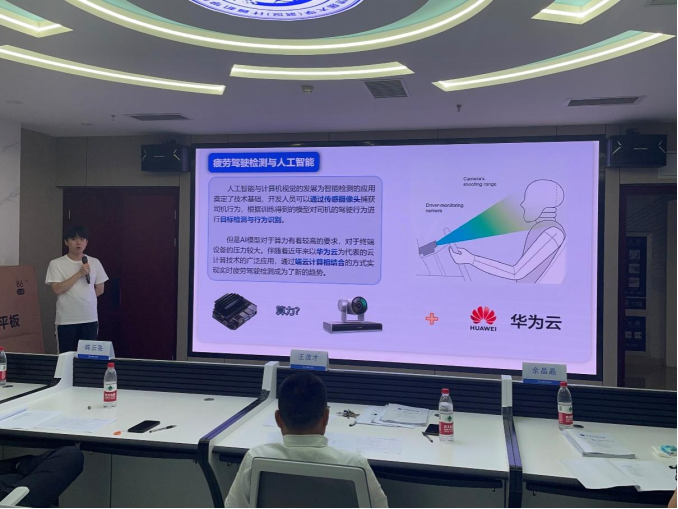 前期,英国365集团网站组织了校内初选,五个项目脱颖而出晋级校赛,分别是基于华为云pass的语音合成应用、基于端云协同的疲劳驾驶识别应用、端云协同疲劳驾驶实时检测、基于昇思Mindspore的医学图像分割应用、地学大数据共享服务平台。比赛现场,入围参赛队从项目背景、产品创新、商业模式、教育引领等多维度全方位展示本项目情况。各参赛项目团队以高质量的内容展示、自信得体的台风体现了公司学子创新创业风采,彰显了公司近年来创新创业教育改革的成果,为大家上演了一场精彩的比赛,以下是各个团队的答辩现场。