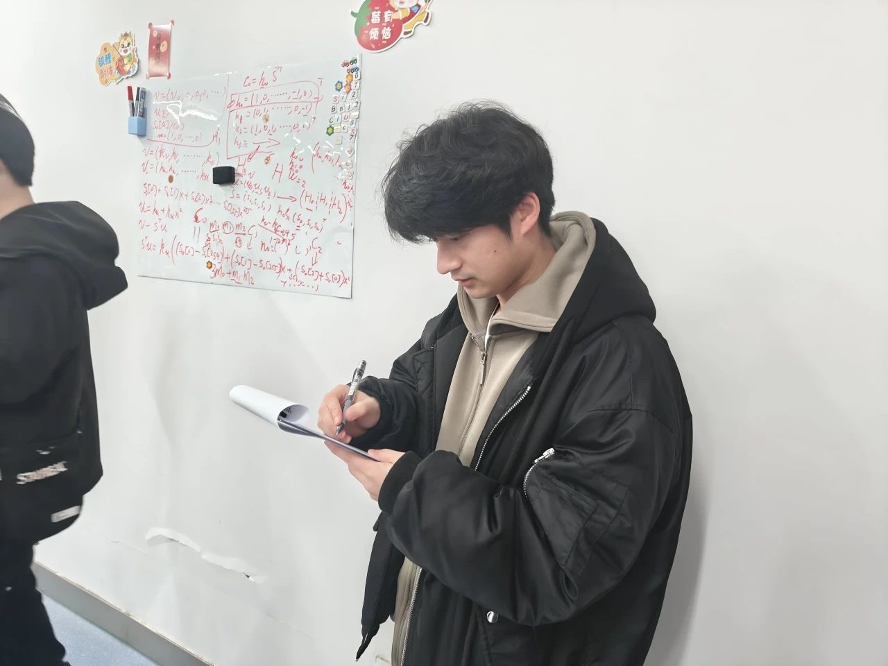 实验室的文化墙见证了员工们在导学团队中的成长与蜕变。这些生动的照片不仅展示了他们的精神风貌,还传递了一种积极向上的力量。在走访过程中,吴湘宁老师还碰到了同学们积极参与实验室器材的维护工作。他们认真检查机器的运行状况,及时排除故障,确保科研工作能够顺利进行。