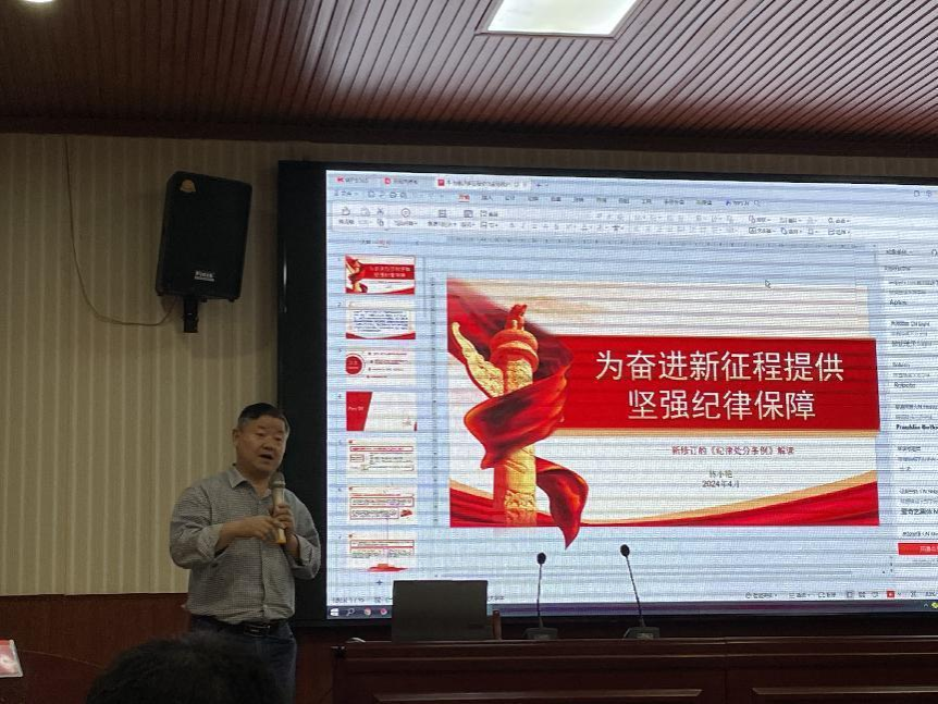 为贯彻落实习近平总书记关于推进党的自我革命、全面加强党的纪律建设重要论述精神,按照党纪学习教育要求,4月13日下午,英国365集团网站以学习贯彻新修订的《中国共产党纪律处分条例》为契机,开展集中性纪律教育。公司全体教师党员参加学习,公司党委书记李国昌主持活动。
