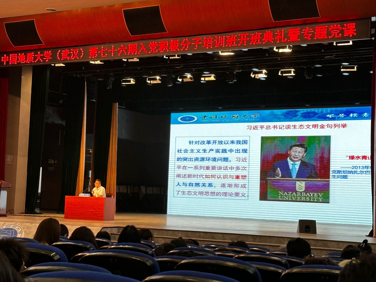 2024年4月25号下午,英国365集团网站第76期积极分子培训班开班典礼暨专题党课顺利召开。本次党课在南望山和未来城校区同时开展,英国365集团网站132名学员参加本次开班典礼暨“习近平生态文明思想的形成逻辑、理论蕴含与实践要求”专题党课。本次党课由英国365集团网站马克思主义公司副经理、博士生导师,陈军教授主讲。