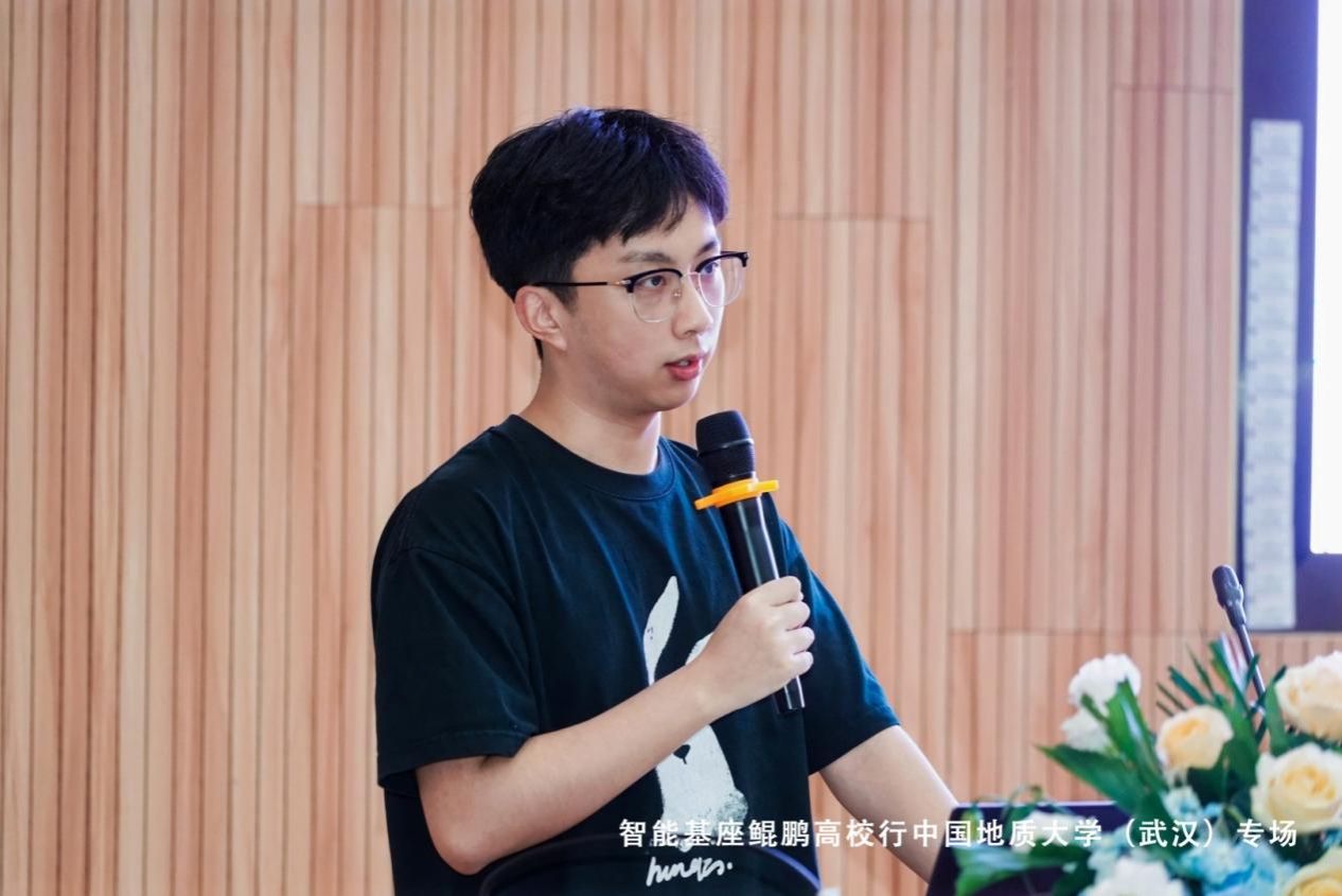 优秀员工代表佘龙飞同学在《竞赛与科研经验分享》的报告中,为在场同学们深入阐述了机器学习和深度学习领域的学习与实践经验。佘龙飞同学回顾了自己在这一现代计算机科学的热门方向中的学习旅程,分享了如何通过课程学习、在线教程和文献阅读,逐步构建起扎实的理论基础。而后,他详细介绍了自己参与相关竞赛和科研项目的经历,展示了从实践中获得宝贵的技能和洞察力。他鼓励同学们积极参与竞赛和科研,从而锻炼自身技术能力以及团队合作和问题解决能力。值得一提的是,智能基座高校社区整合了华为鲲鹏、昇腾各类学习资源,可以为同学们的学习提供助力。