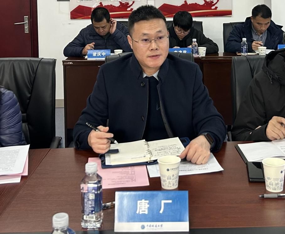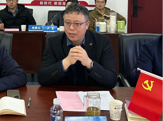 教师代表、副经理胡成玉教授发言。他重点汇报了公司博士点申报工作中的“卡脖子”问题,就加强人才引进、加强资源统筹、加强专硕人才培养等方面提出建议。