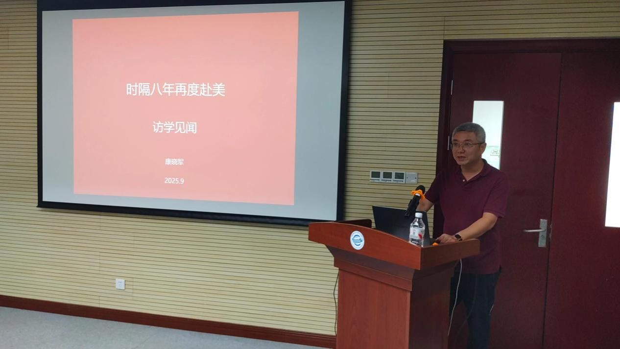 首先,康晓军老师做了“时隔八年再度赴美--访学见闻”的报告。康老师于2016年、2024年两次赴美,在East Carolina University(ECU)的物理系进行访学,师从XInHua Hu教授,从事计算机视觉领域的研究。具体研究内容主要是通过结合傅里叶变换的Transformer、重新设计的非对称双通道深度卷积网络,实现单细胞水平上对于癌症细胞的光学衍射图像进行精确的分类。康老师特别对比了对美国政治、经济的前后八年直观印象对比,从一些生活细节感受到中国出口美国产品从低端到科技含量不断提升的事实,增强了尽快尽多学习研究计算机领域课题的使命感。康老师还就国际情况变化下目标访问公司、导师及签证申请给出了建议意见。