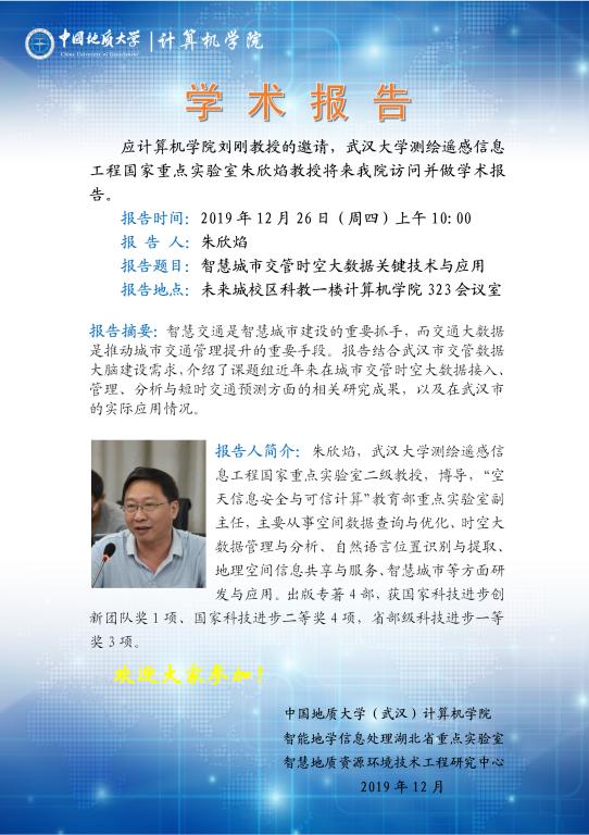 学术报告——武汉大学朱欣焰:智慧城市交管时空大数据关键技术与应用