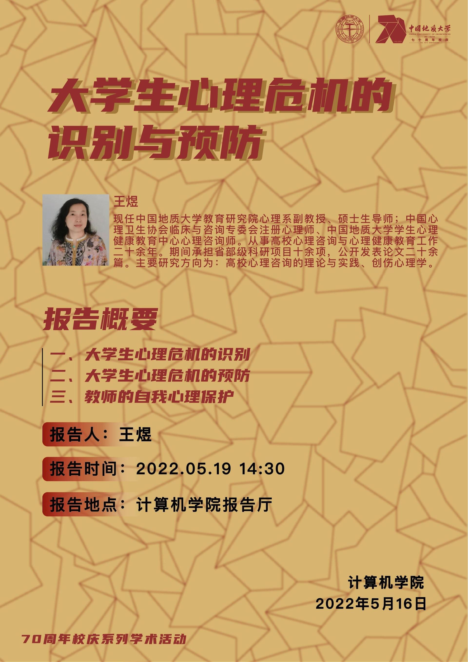 学术讲座——中国地质大学教育研究院心理系副教授王煜:老员工心理危机的识别与预防