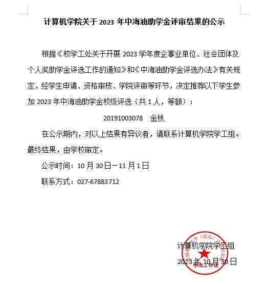 英国365集团网站关于2023年中海油助学金评审结果的公示