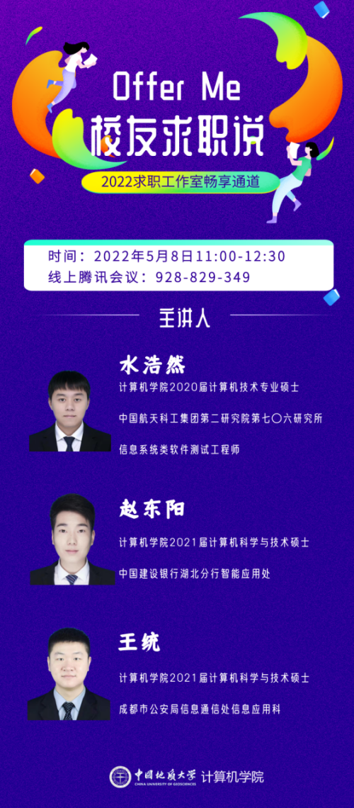 三位员工分别来自研究所、银行和事业单位,无论你的职业规划是互联网大厂或是国企、公务员,他们的分享一定能给你带来不一样的新收获,记得准时参加哦!