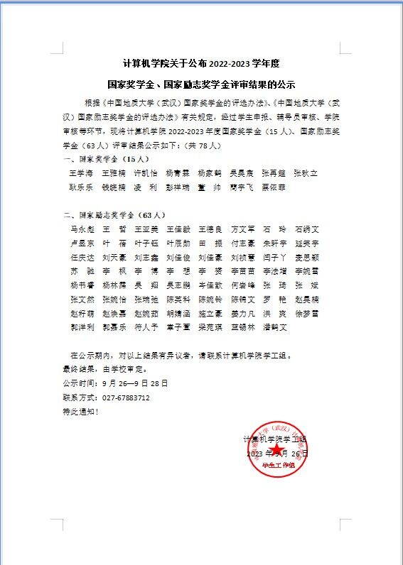 英国365集团网站关于公布2022-2023学年度国家奖学金、国家励志奖学金评审结果的公示