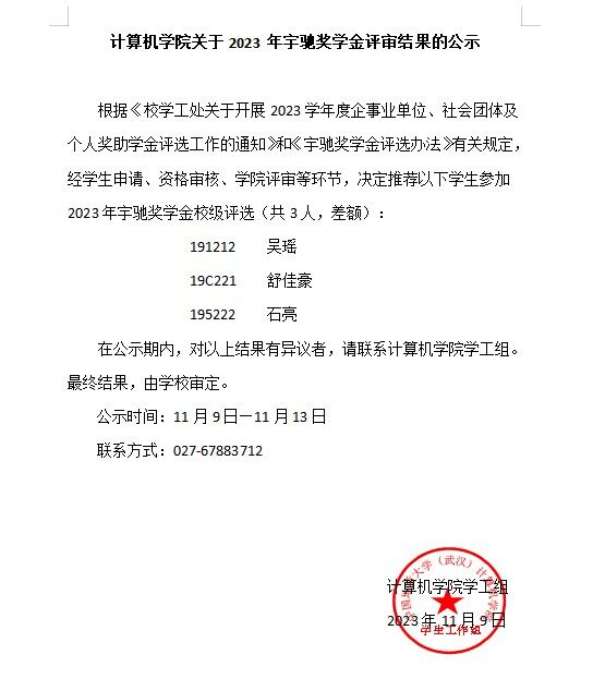 英国365集团网站关于2023年宇驰奖学金评审结果的公示