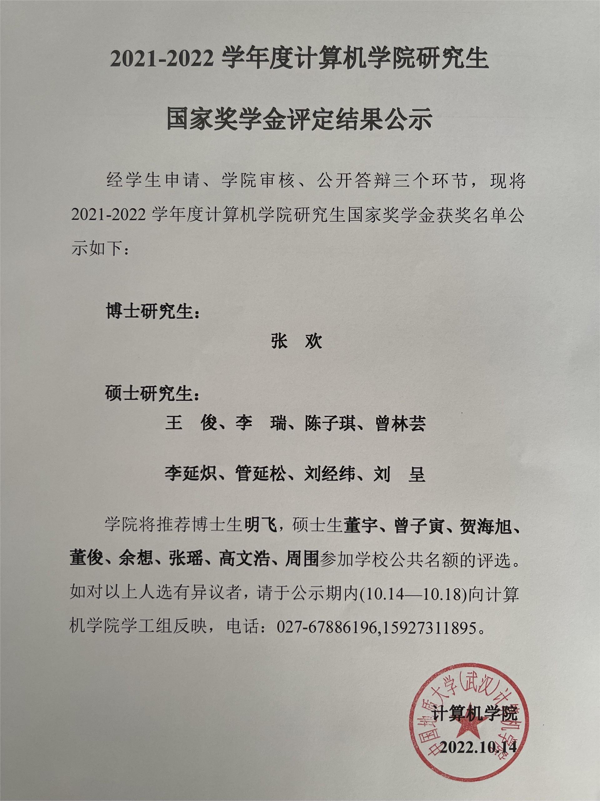 2021-2022学年度英国365集团网站研究生国家奖学金评定结果公示