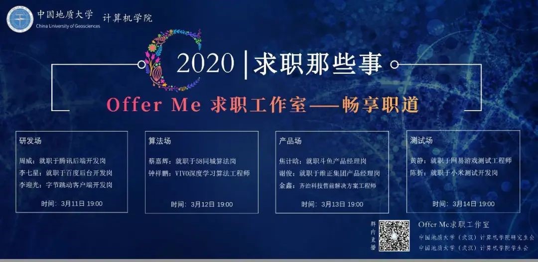 3月11日至3月14日晚,英国365集团网站研究生会“offer me 求职漫谈”经验分享系列活动成功举办。疫情当前,停课不停学,隔离不隔爱。活动共邀请11位学长学姐在线分享求职经验,并深入讲解和剖析求职技巧。